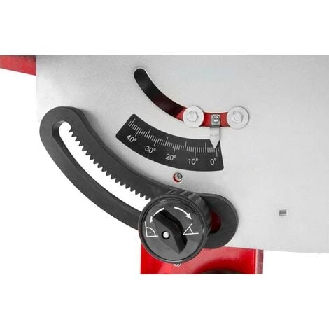 La lame a un réglage continu de la hauteur et de l’inclinaison grâce à un guide cranté. La hauteur de coupe est de 90mm lorsque la lame est à 90° alors que lorsqu’elle est à 45°, la hauteur de coupe atteint 50mm.