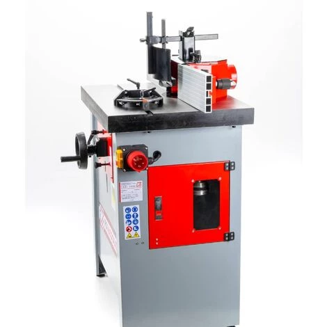 La toupie Holzmann FS160SOLID offre 4 vitesses de rotation, un arbre interchangeable de 30 mm pour l’utilisation de porte-outils ou de fraises alésoirs et un chariot coulissant en aluminium pour les tables !