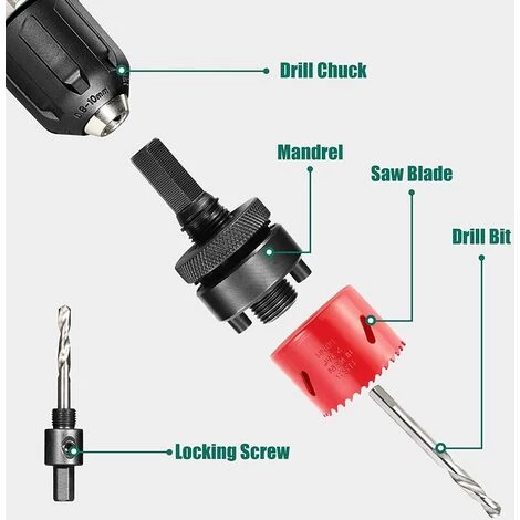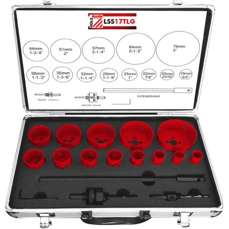 - Diamètre trépan HSS : 19mm, 20mm, 22mm, 25mm, 29mm, 32mm, 35mm, 38mm, 44mm, 51mm, 57mm, 64mm, 76mm