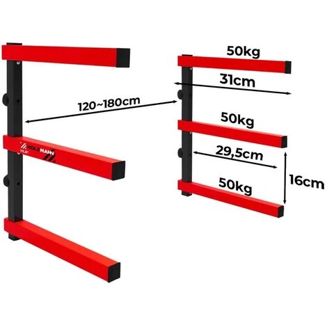 Vous pouvez facilement ranger votre hangar/atelier avec ces crochets de rangement en acier Holzmann. Avec une capacité de charge de 50 kilogrammes chacun, les crochets peuvent facilement transporter une lourde planche de bois. En outre, les supports peuvent également être utilisés pour placer une planche de surf, une planche de SUP ou tout autre objet long. De cette façon, vous pouvez l’atteindre facilement sans qu’il vous gêne.