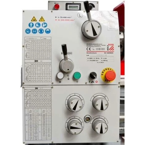 Inclus dans la livraison: tourelle de changement rapide 3 positions, Mandrin 3 mors Ø 200mm, 4-plateau de reprise Ø 200mm, carter de protection du mandrin, plateau de broche Ø 250mm, 2x pointe fixe solide CM4, douille de réduction CM 6/4, , lunette fixe, lunette à suivre, lampe halogène, carter arrière, système de refroidissement, frein de broche électromagnétique au pied, 1 Kit de pignons d‘avances, Clés de service.