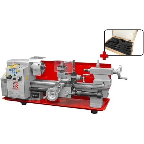 Livré avec Mandrin à 3 mors Ø 80 mm, tourelle 4 positions, poupée mobile CM3 poupée mobile CM2, protecteur du mandrin, bac à copeaux, changeur de vitesse, clés de service